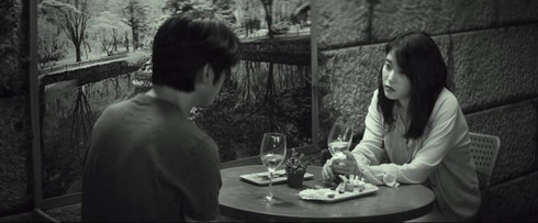 In this scene, we see a man, who is very uptight and nervous, talking to a much younger IU who has been missing for two weeks. When asked where she has been, IU responds that she went surfing and doing yoga with two foreign male friends on an island. The man is visibly upset and struggling to keep his emotions in check. As he listens to IU recount her adventures, he realizes that their relationship is one-sided and his subconscious doubts manifest as his ex-fiancée. IU gives the man a gift and asks him to open it later. He tries to impress her by proclaiming his love and respect for women, but she is uninterested and more focused on her phone.